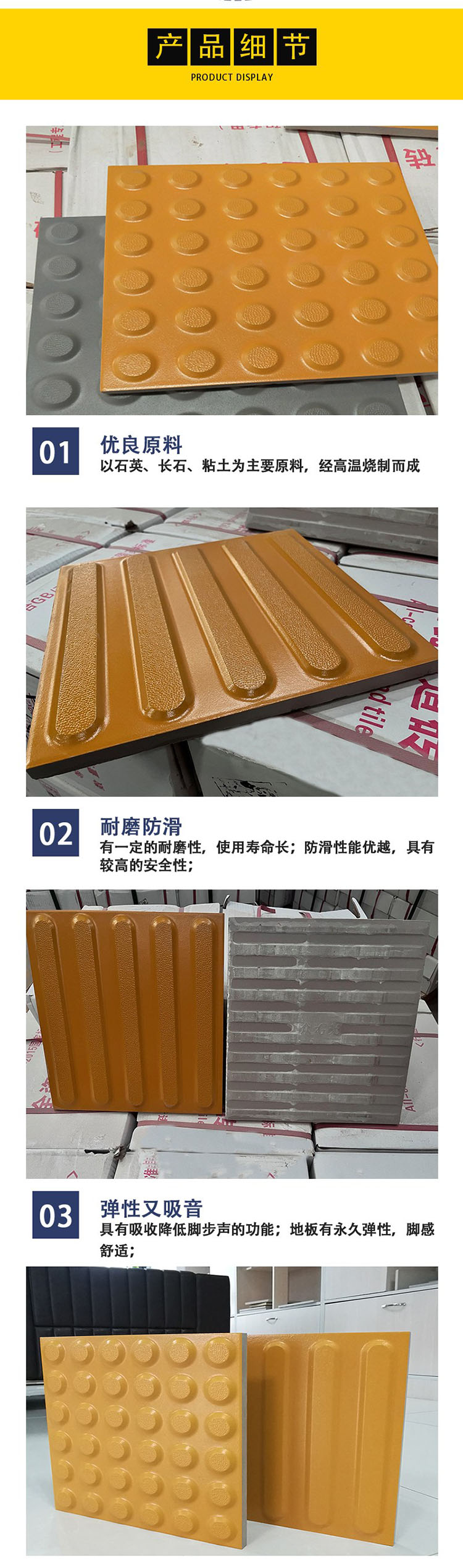 中黄色防护盲道砖